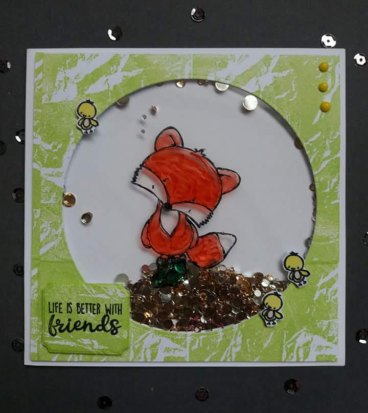 Fox shaker Card How to make a Fox shaker card by Alison Markham Using Mixed Media Crumpled Stamp and Woodland Friends Fox illustrated by Tracey