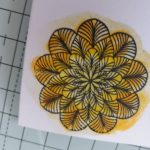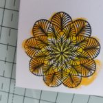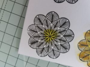 2. Using lemon yellow, yellow and bright yellow zig clean colour pens roughly colour each image, then blend with a water brush. Leave to dry.