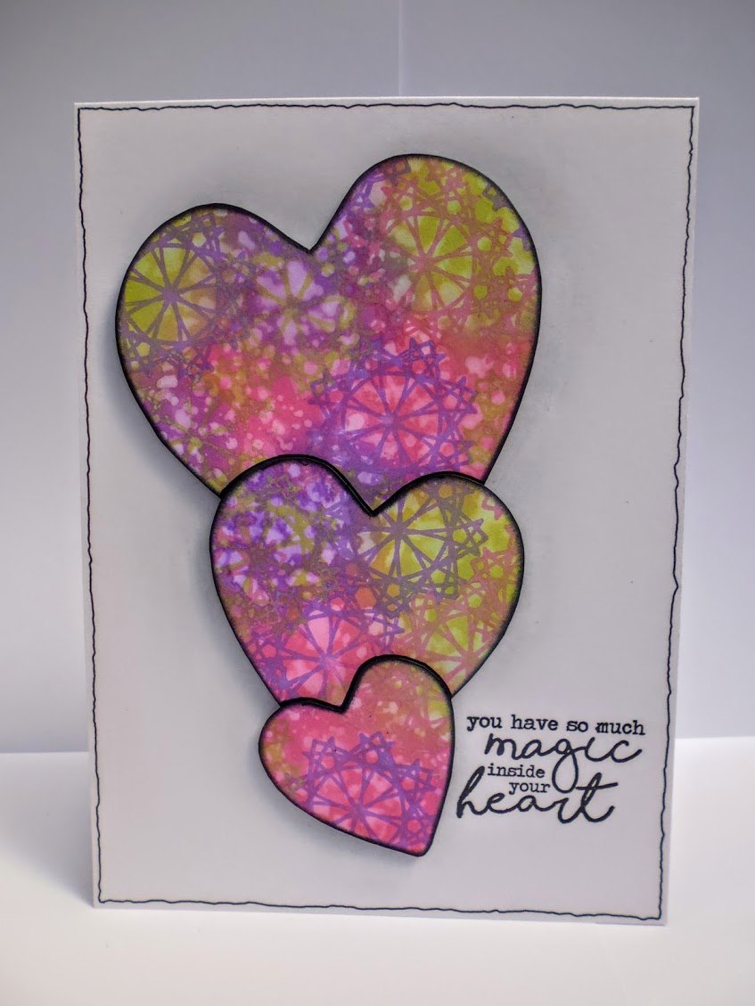 Hi all, Diane here with a simple tutorial to make this 3 hearts card using May’s Stampscription box stamps. You will need: May’s Stampscription Box