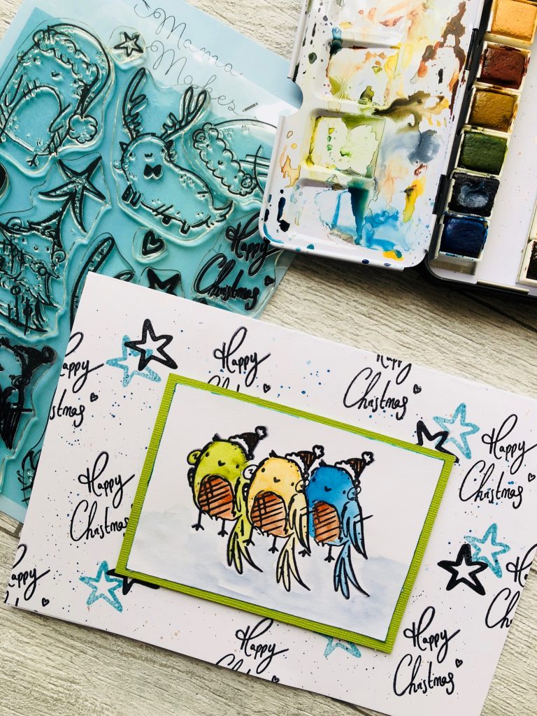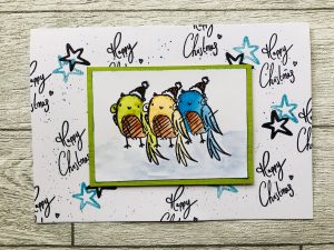This month I would like to share my Christmas card I have made using the cute bird stamp from the Copolop Christmas pals set .