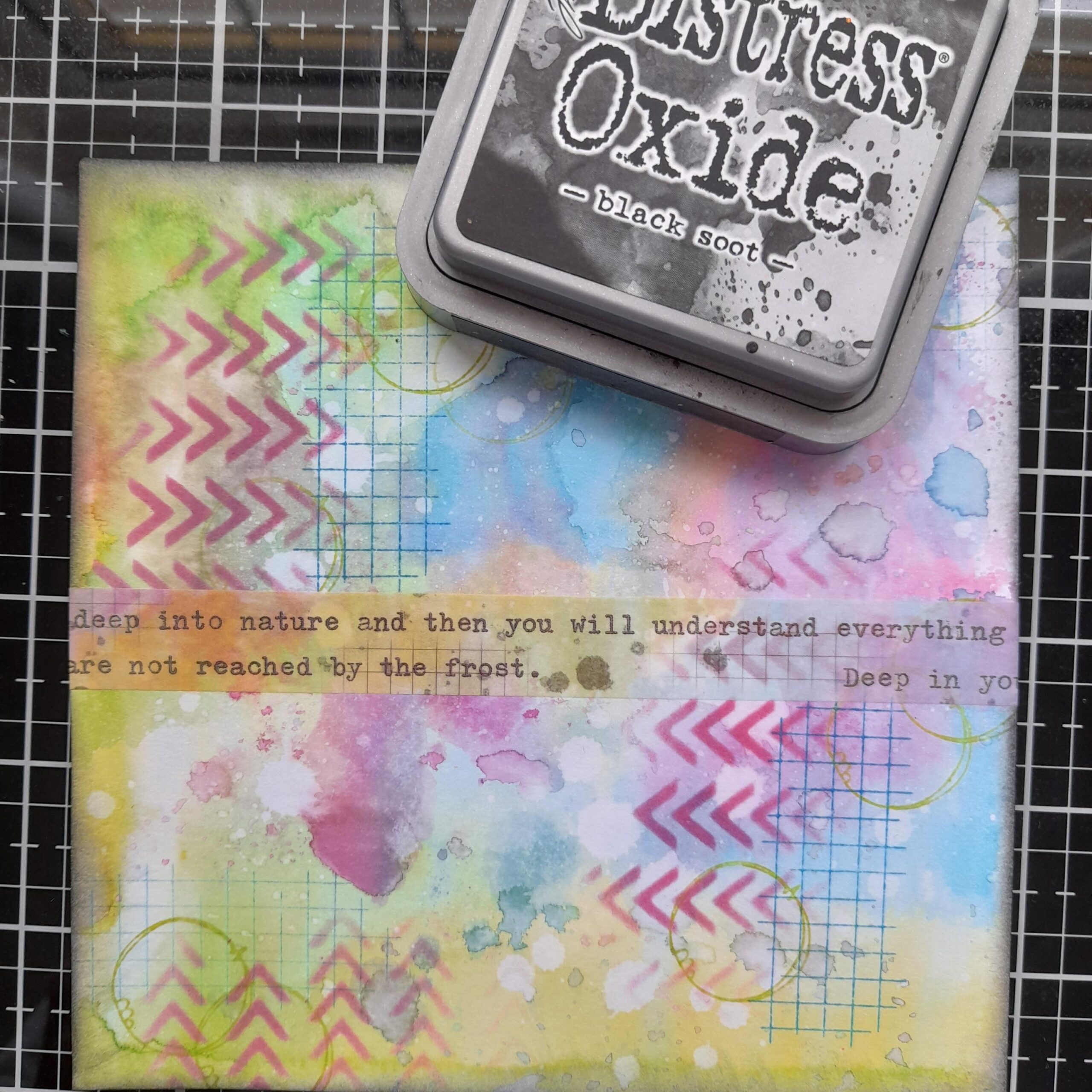 Blend some Black Soot Distress Oxide around the edges of the card.