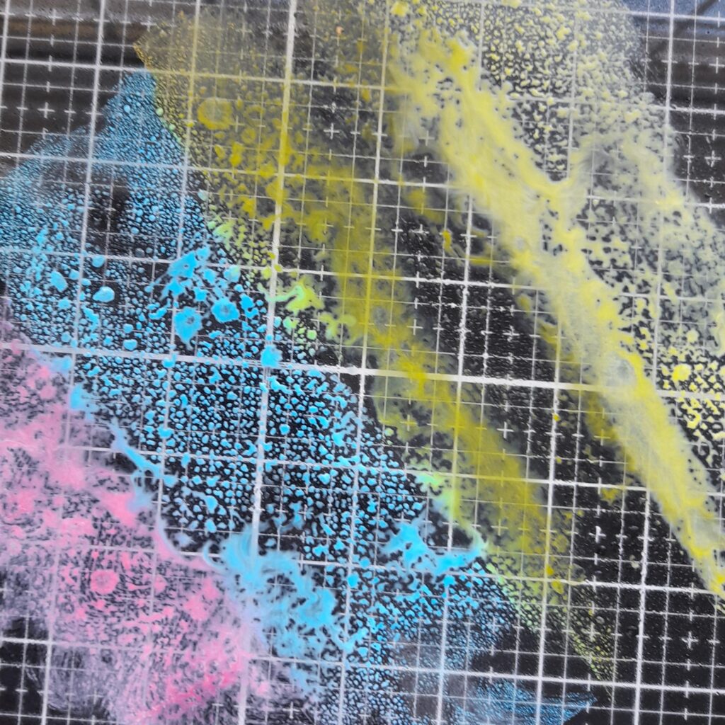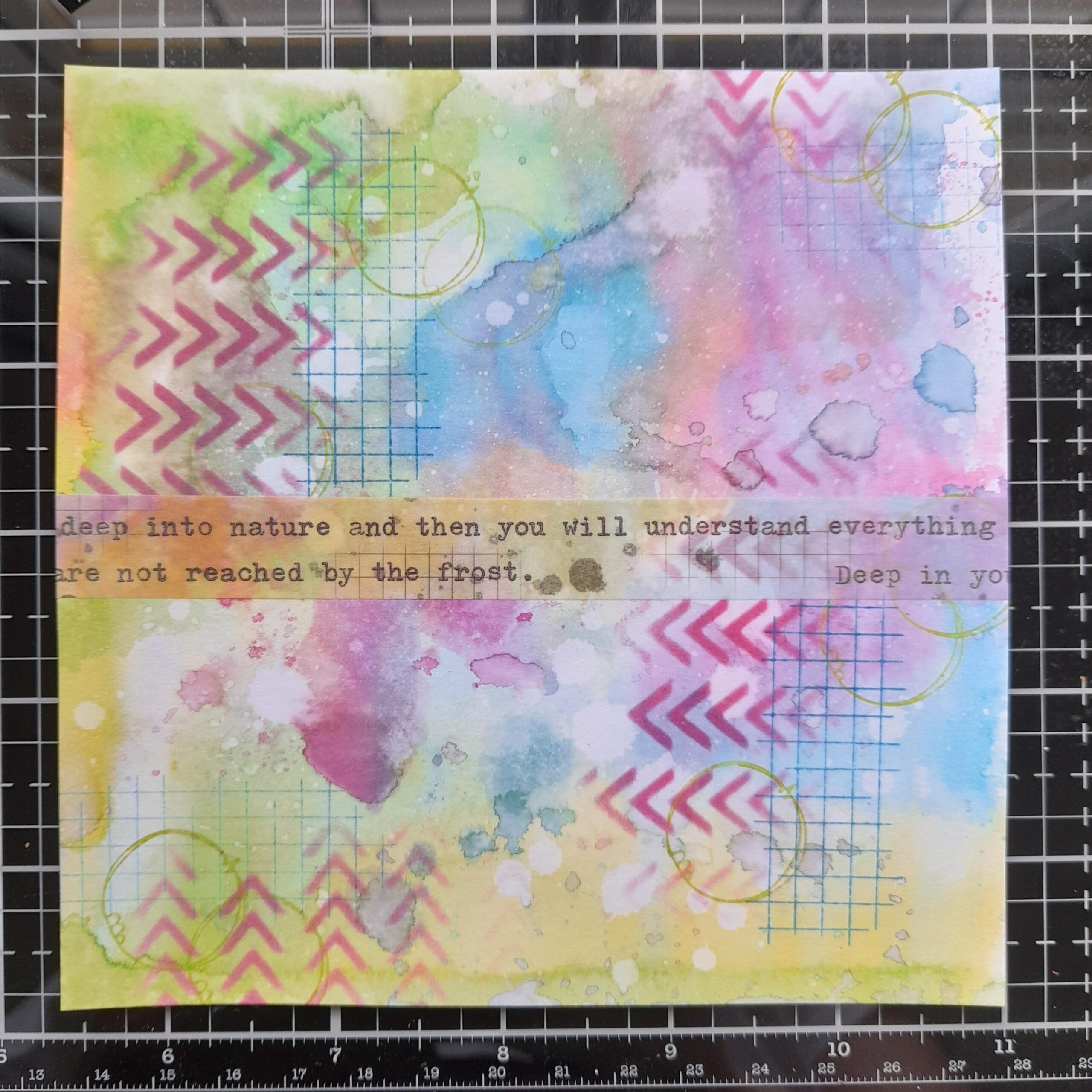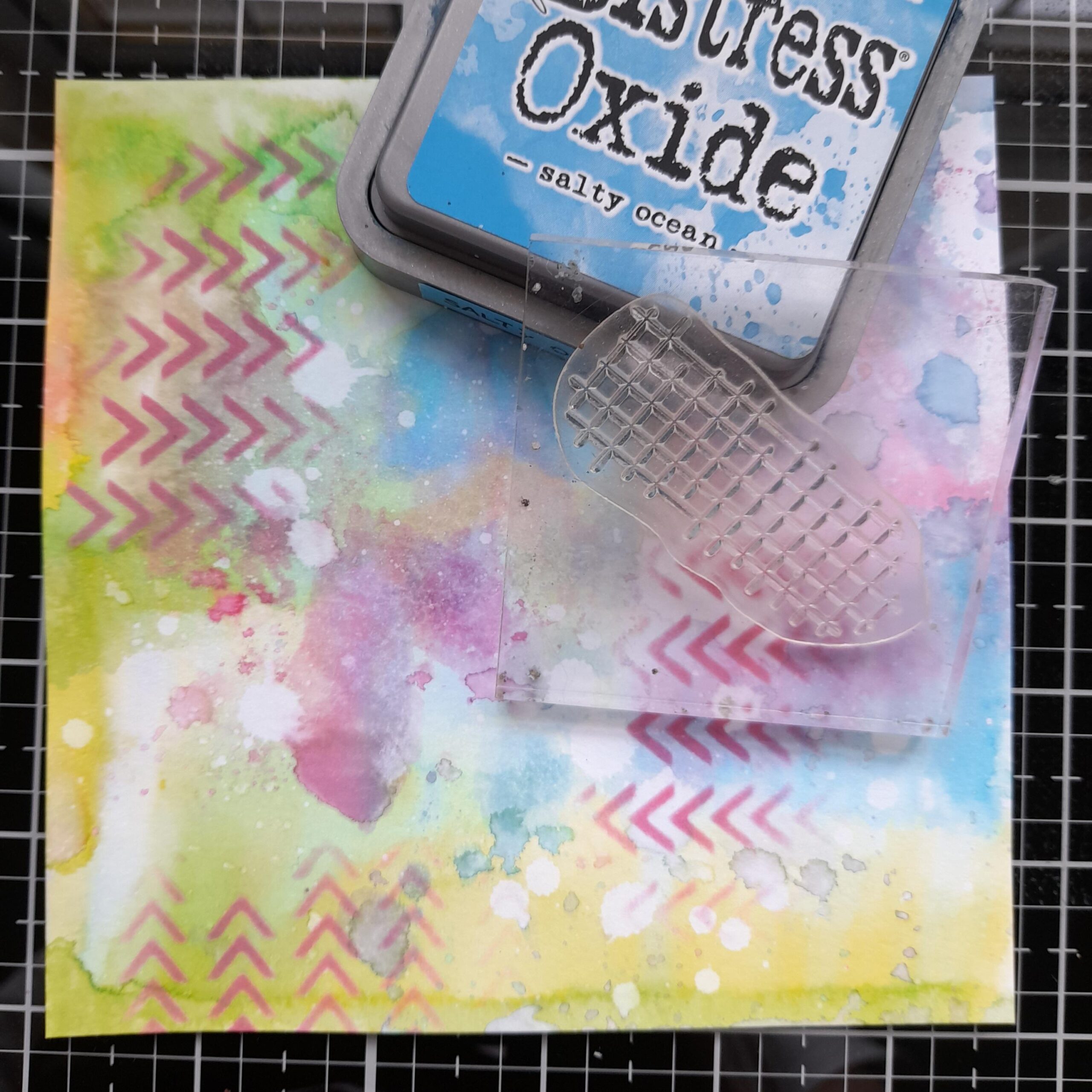 Use Salty Ocean Distress Oxide to stamp the above stamp over the background, again randomly.