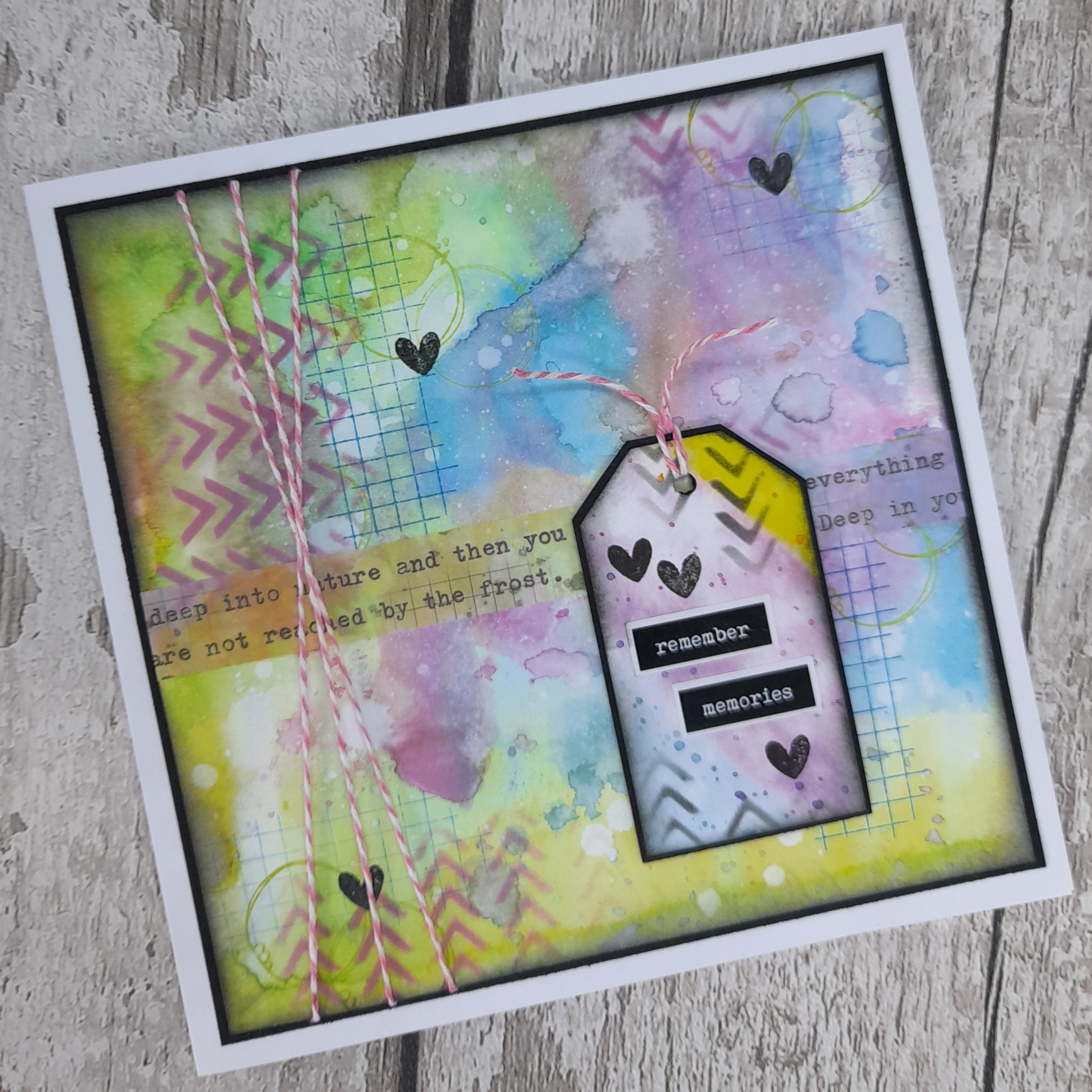 Put the Oxides on to your mat and spritz with water, drag the white card through it and dry with a heat tool. Repeat until you get the look you want.
