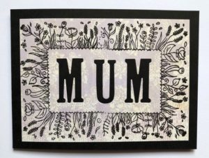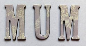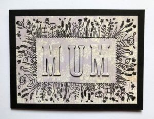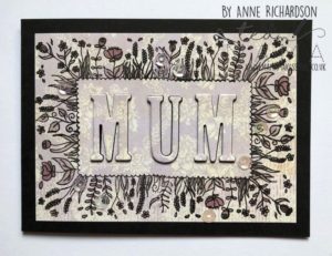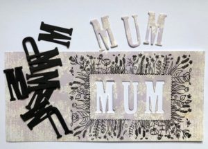 Cut out the word MUM from the centre and also cut another 3 sets of letters from black card