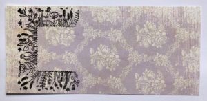 Stamp the floral square onto a piece of patterned paper masking off one side