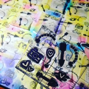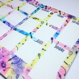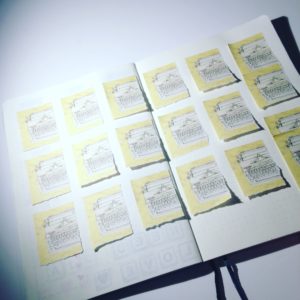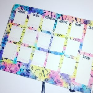 I started this week by masking off three sections per day (7 squares by 9 squares) Monday to Friday then two larger sections for Saturday and Sunday (7 squares by 16 squares) once these have been masked with post it notes I chose my colour pallet. I’ve gone for a more vibrant theme in the hope it may cheer the weather up – and if not my pages at least are cheery.