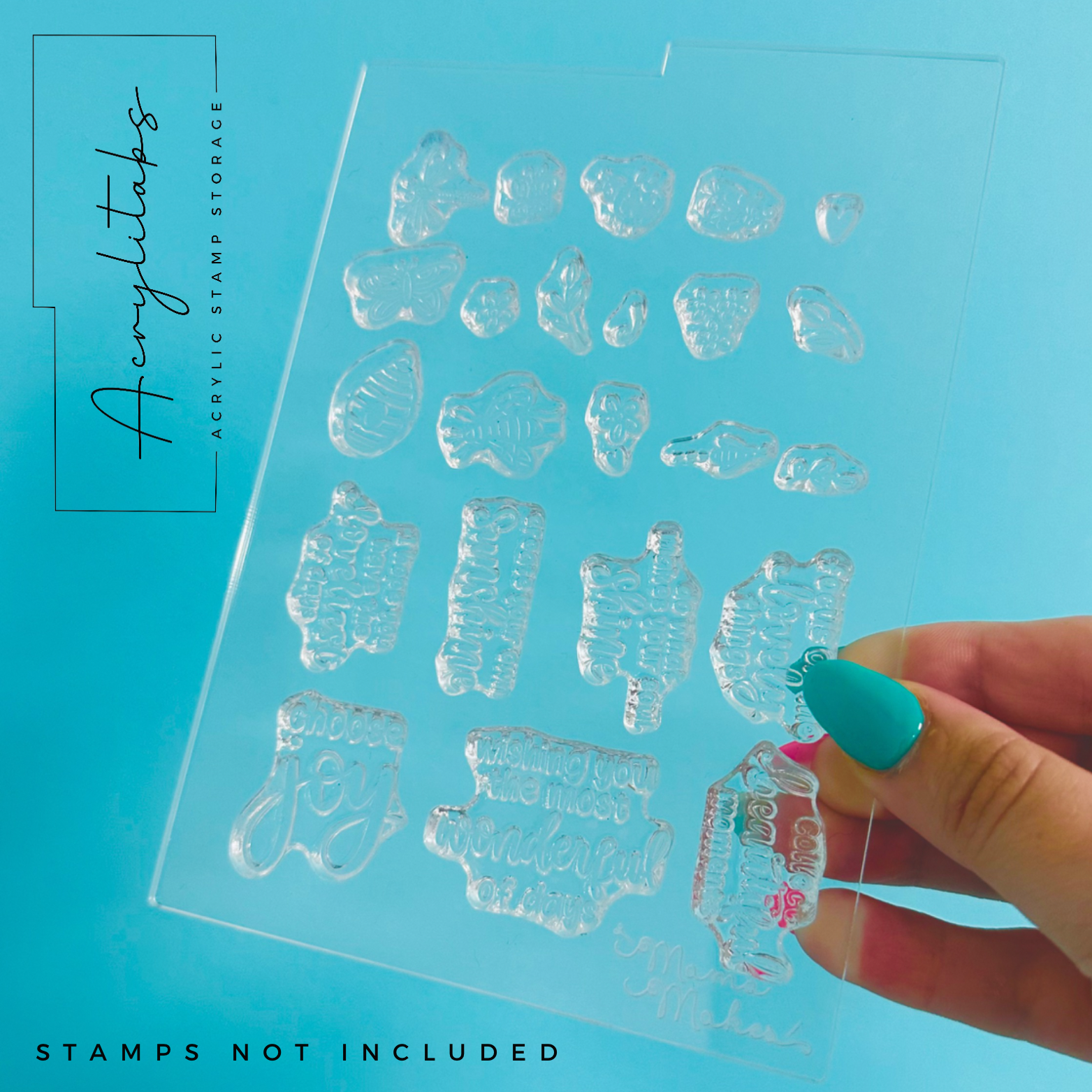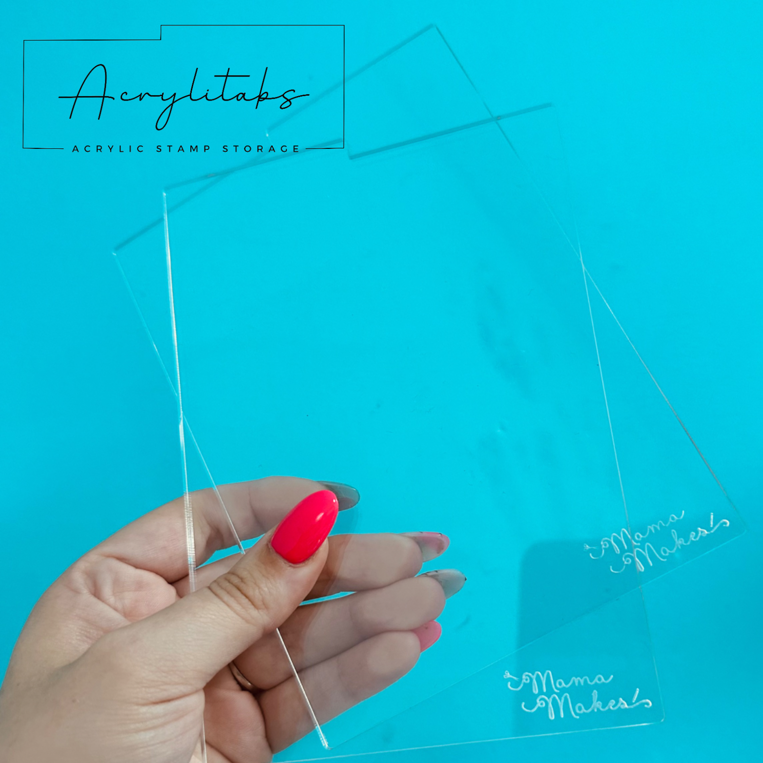 The Mama Makes AcryliTabs are the perfect storage solution for your A6 stamp sets. Made from high quality clear acrylic, this storage system is the perfect way to keep your stamps, safe, dust free and together. The tabs at the top alternate sides so you can easily flick through your stamp stash.