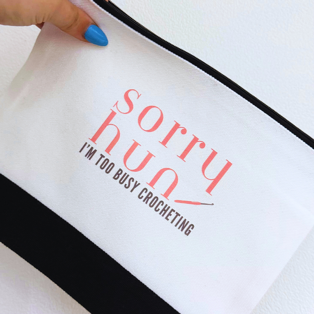 These large craft pouches are perfect for keeping your crochet supplies or projects in one cute storage solution. Measuring 15cm x 22cm x 6cm, these are a perfect fit for an A6 journal if you have a crochet journal too.