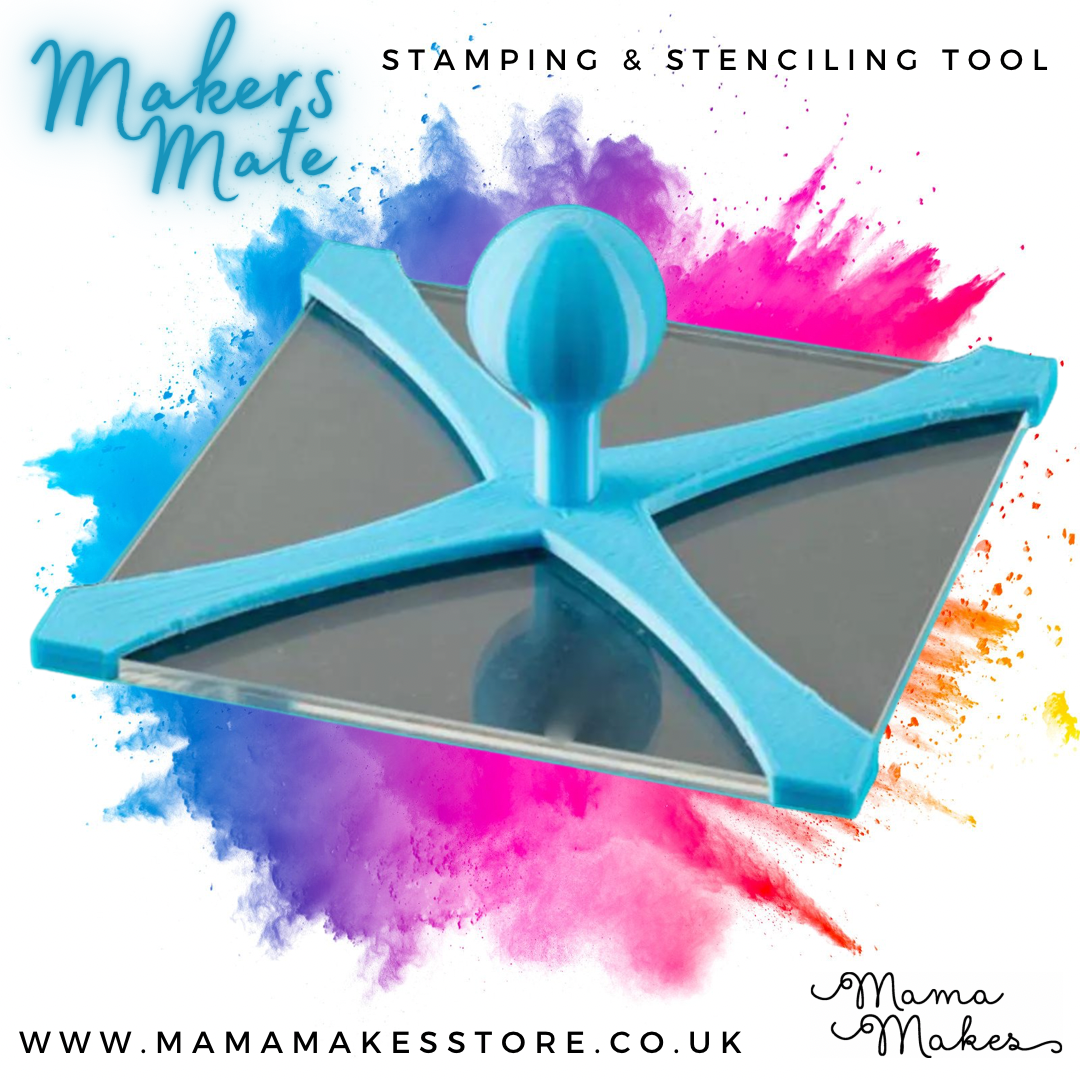 For years we have been asked for a ‘handle’ for our stamps to make stamping easy. Well we listened! We worked hard with a 3D printing engineer to develop this amazing tool which makes not only stamping easy with an ergonomic handle, but also can be used to hold down stencils. The ‘Large’ has an acrylic base for 12cm, the ‘Small’ is available separately and has a base of 6cm.