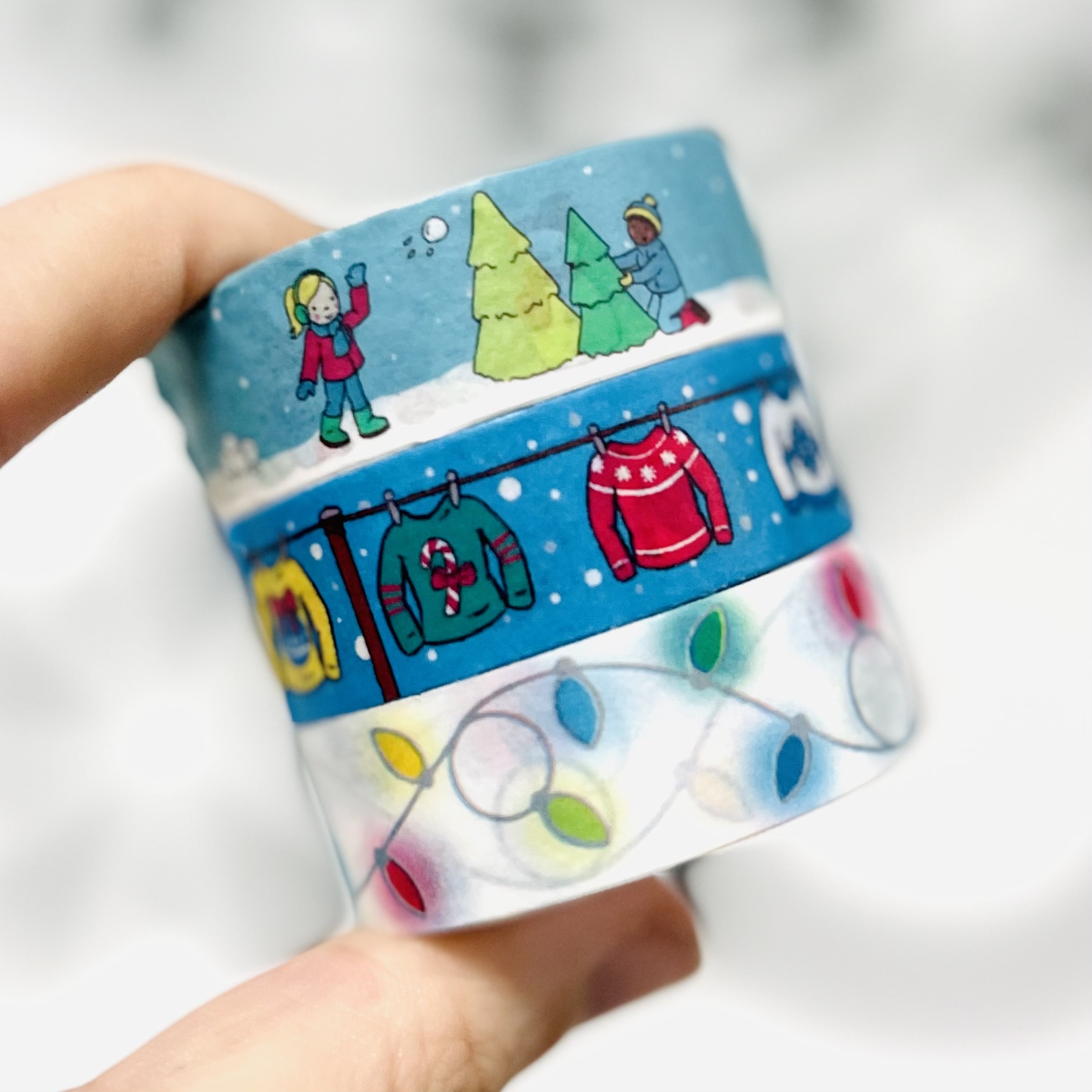 This washi tape has been designed by Charlotte Wooding with 3 designs to choose from all with a festive theme. They are 10m each.