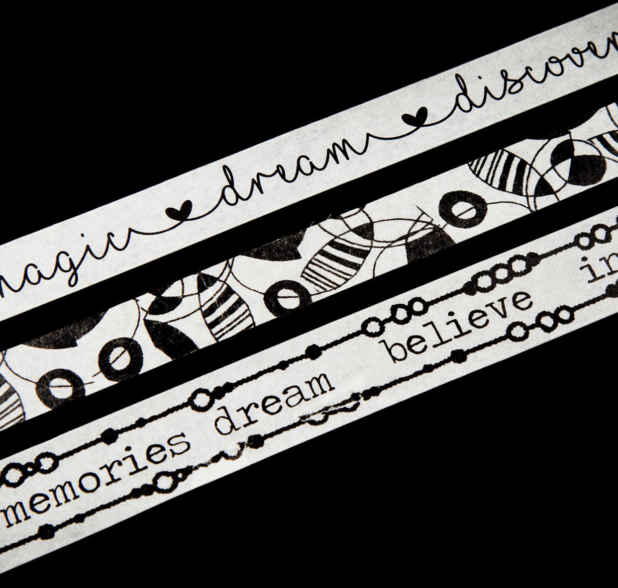 This is the washi tape from the Textured Circles range, hand designed by Natalie Bowers and tweaked/made into washi tape designs by Loti Maria. Each roll has 10m.