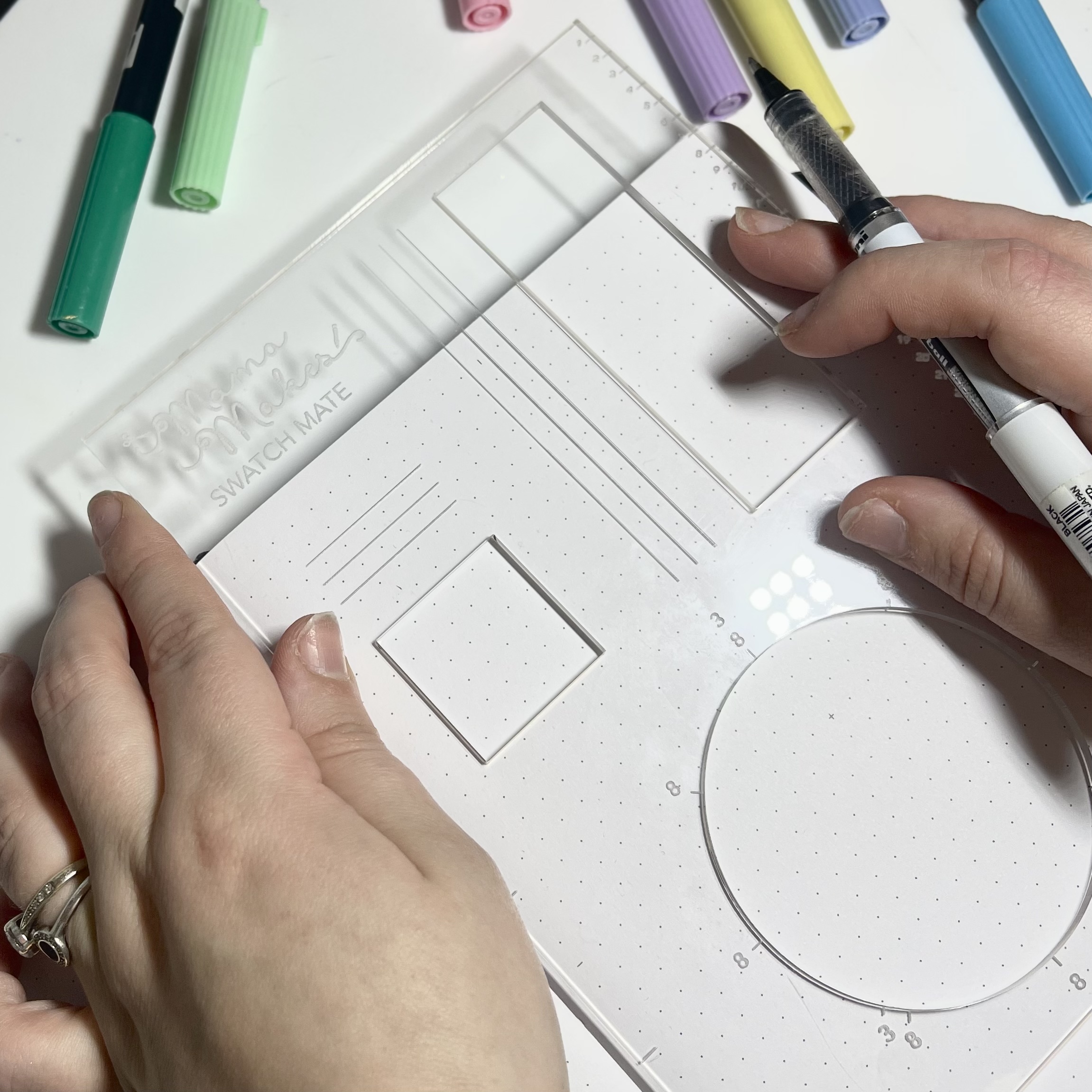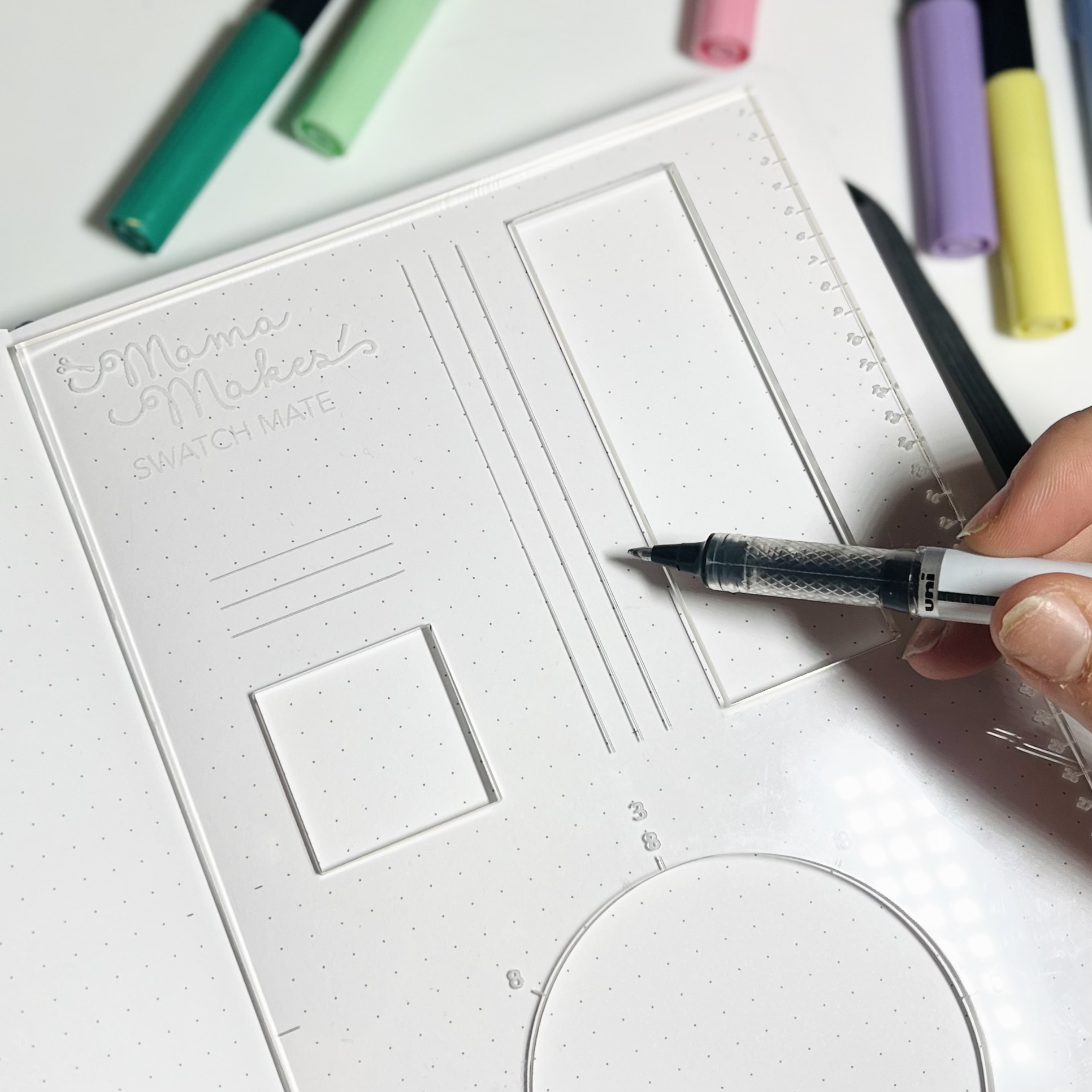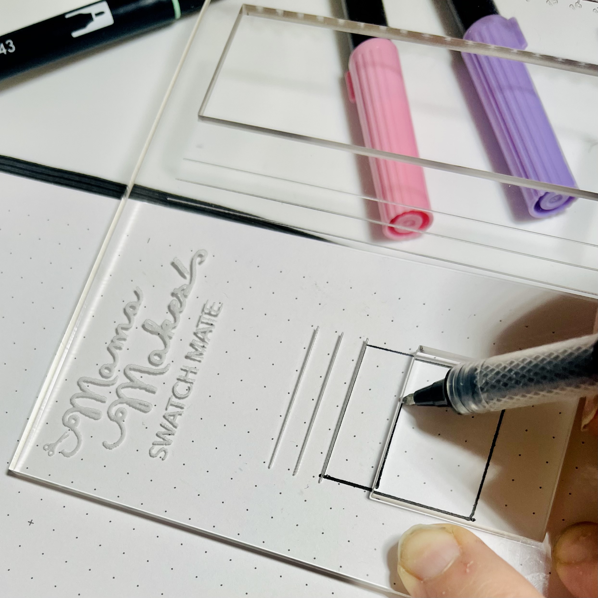 The Mama Makes Swatch Mate will be your new best friend when it comes to trying out your new pens and pencils! This acrylic tool will allow you to draw squares, rectangles and circles to swatch out your different colours and blends.