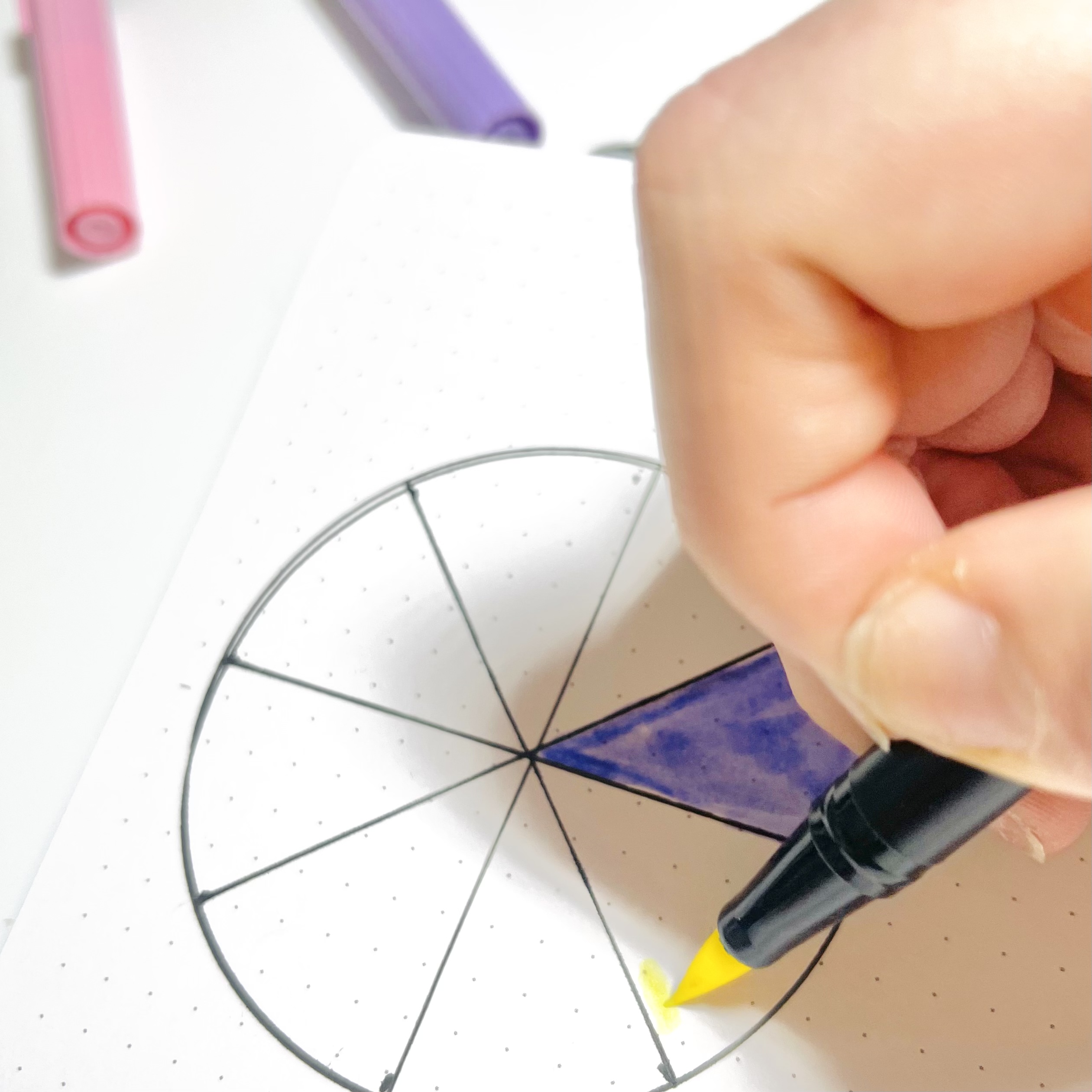 Got 8 pens to swatch? No problem! We’ve done the maths so you can split the circle into 8 segments too.