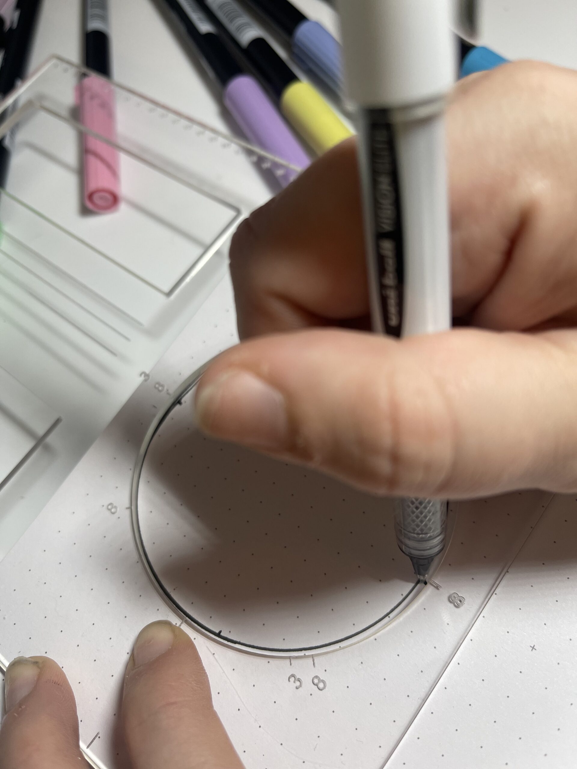 Need to remember that 3 pen blend you aced with your alcohol markers? Split the circle into 3 with our handy guides etched into the acrylic and scribble down the colours so you remember them.