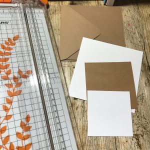 CARD BLANK, WHITE STAMPING CARD, KRAFT CARD, TAPE RUNNER/DOUBLE SIDED TAPE, PAPER TRIMMER,