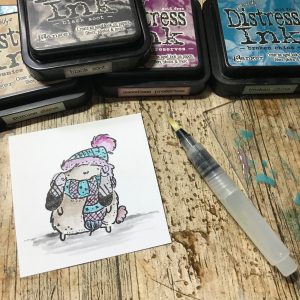 I pressed some distress ink onto an acrylic block, and used the water brush to pick up the colour and add it to the image, creating a soft watercolour effect.