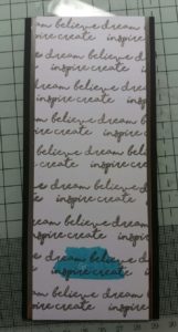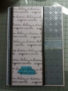 I then cut a piece of silver mirri card to 6.75 inches by 2.75 inches and matted this behind the piece of card with the sentiments. I repeated this step with a 3inch wide piece of black card.